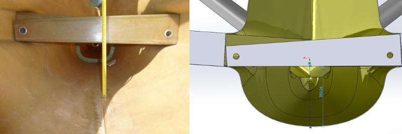 One important thing for me is to track the accuracy between the model and the real thing. The ruler in the left picture shows 245 + 2 = 247 mm (the 2 mm because the ruler has the inner corner as reference). The CAD model show 252 mm at the same spot, which is 5 mm more. For a CAD manufacturing this would be unacceptable, but for planning the inner structure this is pretty good.