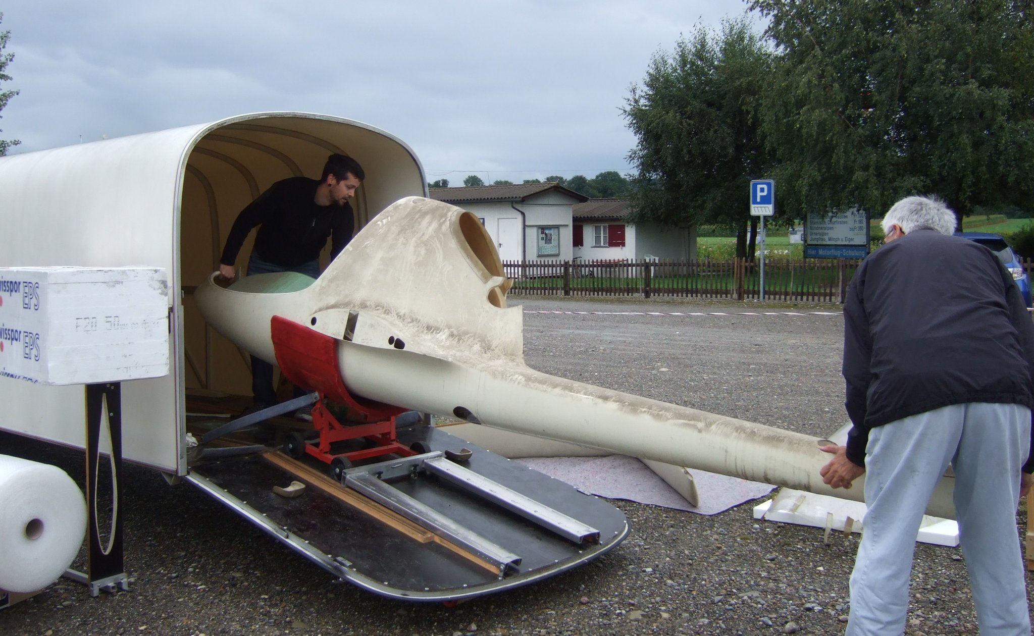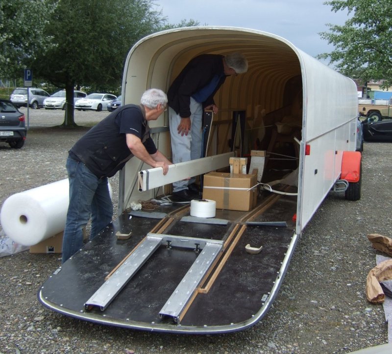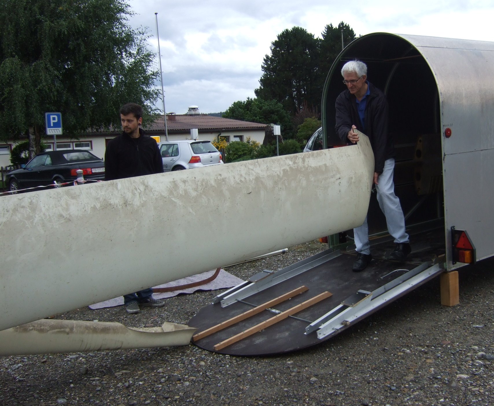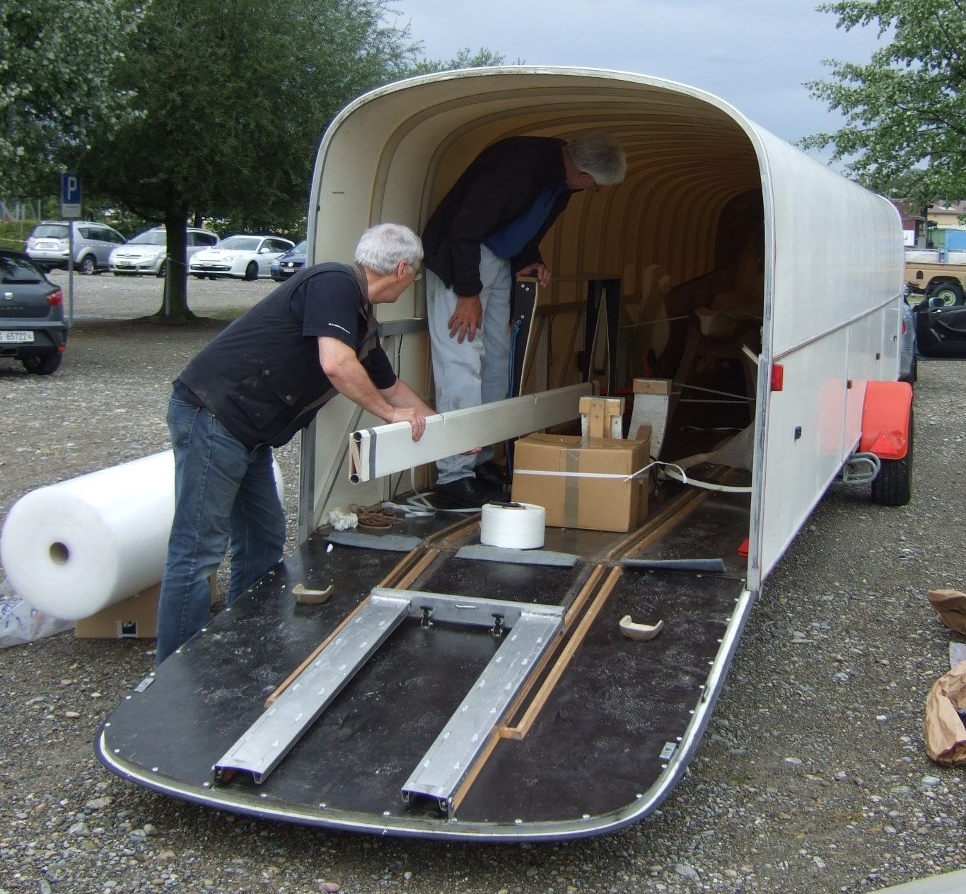 Mein Freund Peter war so nett spontan für mich mit dem Vereins- ASK21 Anhänger loszufahren. Viel Styropor, Schaumstoff und Strick im Gepäck wurde dann alles sicher verladen.